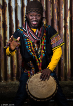Fallou Sy ist als Griot (wolof: Trommler, Tänzer oder Sänger) im Senegal geboren und aufgewachsen.